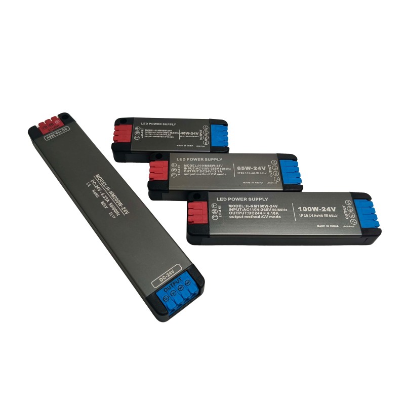 2、Bekalan kuasa mempunyai sarung logam yang sangat nipis dan memanjang dengan kemasan kelabu gelap matte. Sangat padat dan menjimatkan ruang, reka bentuk ultra-nipis, memanjang hanya 15mm tebal, dengan lebar seragam 34mm. Panjang berbeza dari 86mm hingga 173mm bergantung pada kuasa, membolehkan penyembunyian mudah dalam ruang sempit seperti palung ringan, siling dan kabinet, mencapai "pemasangan halimunan" tanpa menjejaskan estetika.