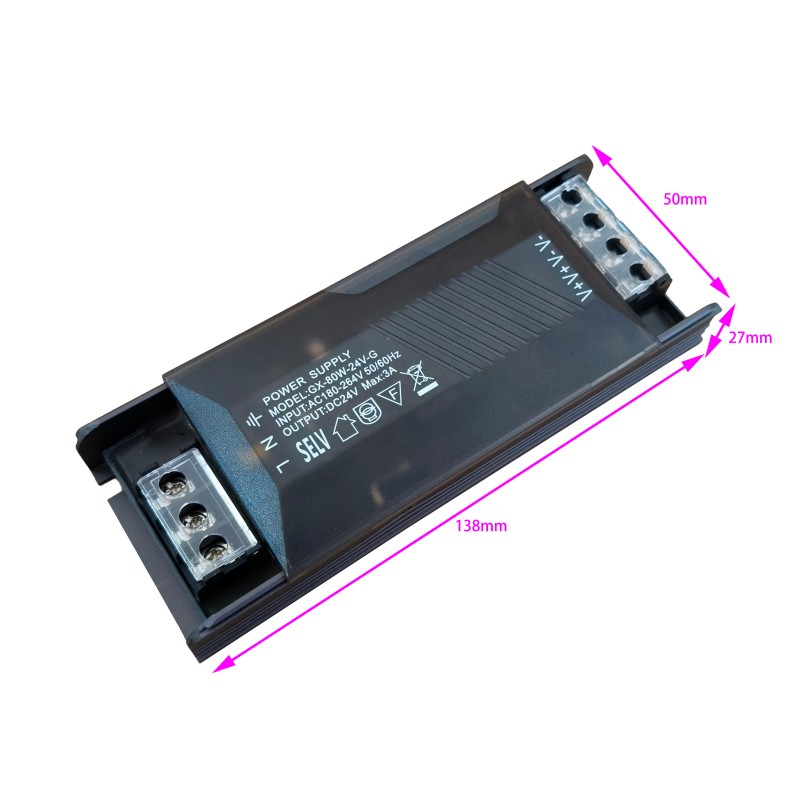 1、24v80w Voltan berterusan Bekalan kuasa beralih LED separuh, reka bentuk novel, tahan haus dan tahan lama.